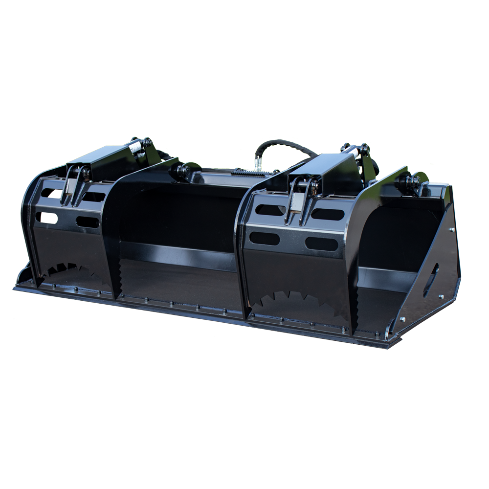 The sides of the grapple are constructed with 1/2” thick steel, while the grapple flats are forged from 5/16” thick steel. The independent action of the grapples ensures secure handling of uneven loads, and with visibility cutouts, there are no blind spots when the grapples are open.
