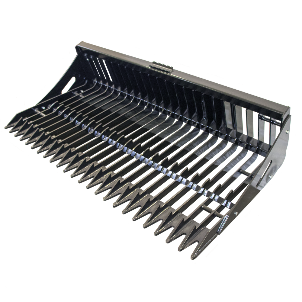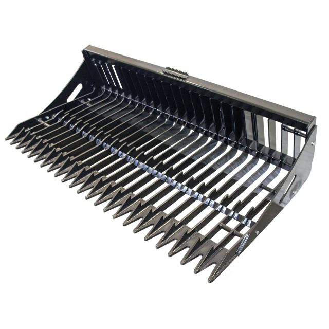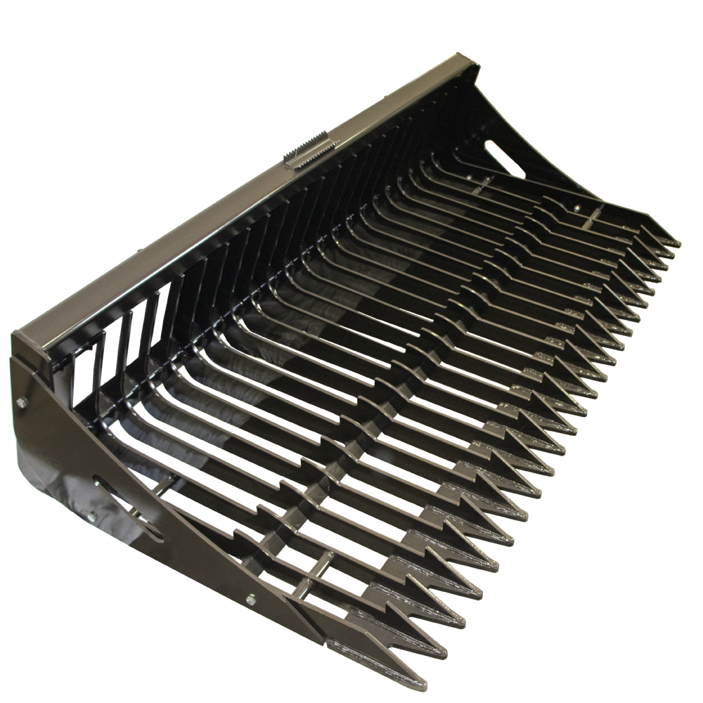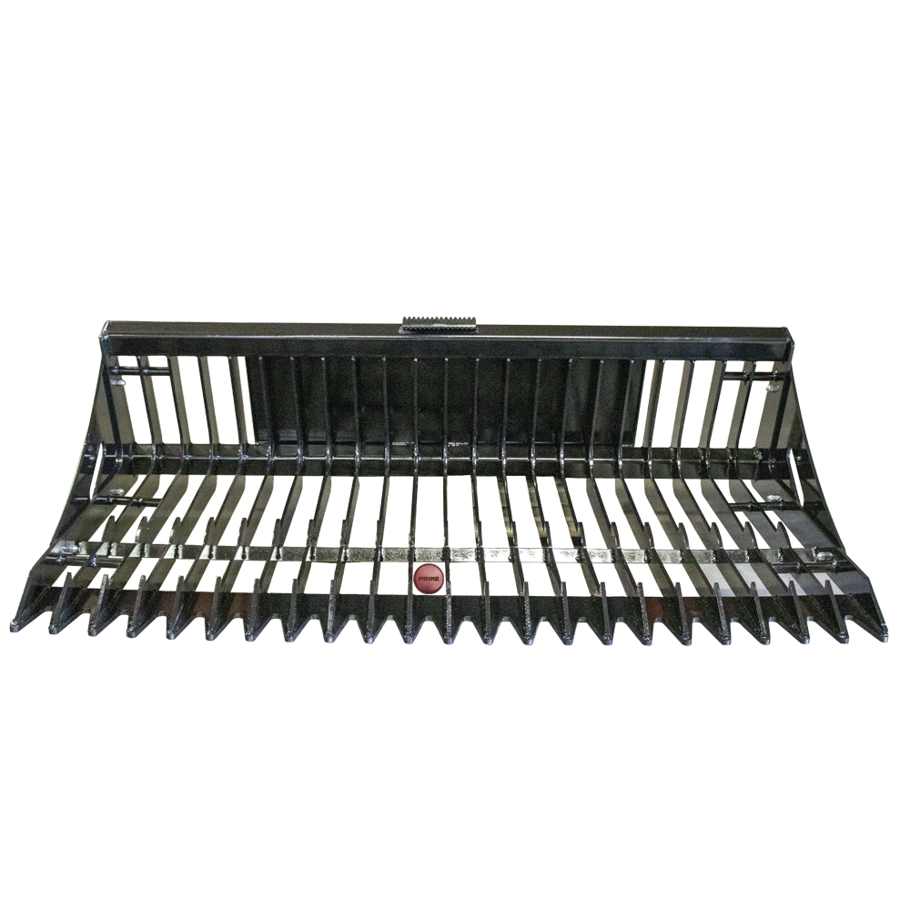 Efficiently clear rocks and logs with Namtec's commercial-grade Rock Bucket. Distinguished from others on the market, our Rock Bucket comes with bolt-on removable end plates and reinforced outside tines spaced 3” apart. This optimal tine spacing ensures the easy removal of both small and large objects, streamlining your tasks and minimizing project completion time.