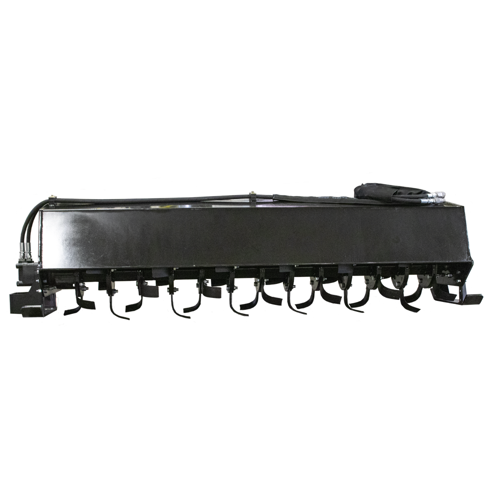 The bidirectional motor saves time and effort by rotating the tines backward or forwards, allowing you to pulverize the soil in a single pass without disturbing it again. Adjustable shoes make Namtec's Tiller highly versatile, enabling you to quickly set the digging depth up to 6”. Operating on standard flow (15-24 gallons per minute), it's available in 6’ & 7’ lengths.