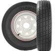 205/75R-14 D MOUNTED ON 14X6 5-4.5 WHITE SPOKE WHEEL. TIRE AND WHEEL ASSEMBLY